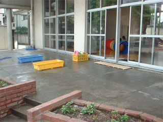 | 就学前の乳幼児は、テラスに出すプールで、水遊びが楽しめます。 | |