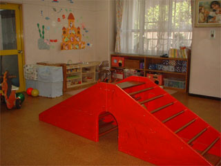 遊戯室に、マット・トンネル・トランポリンなどを、0〜1歳児向けに設置します。